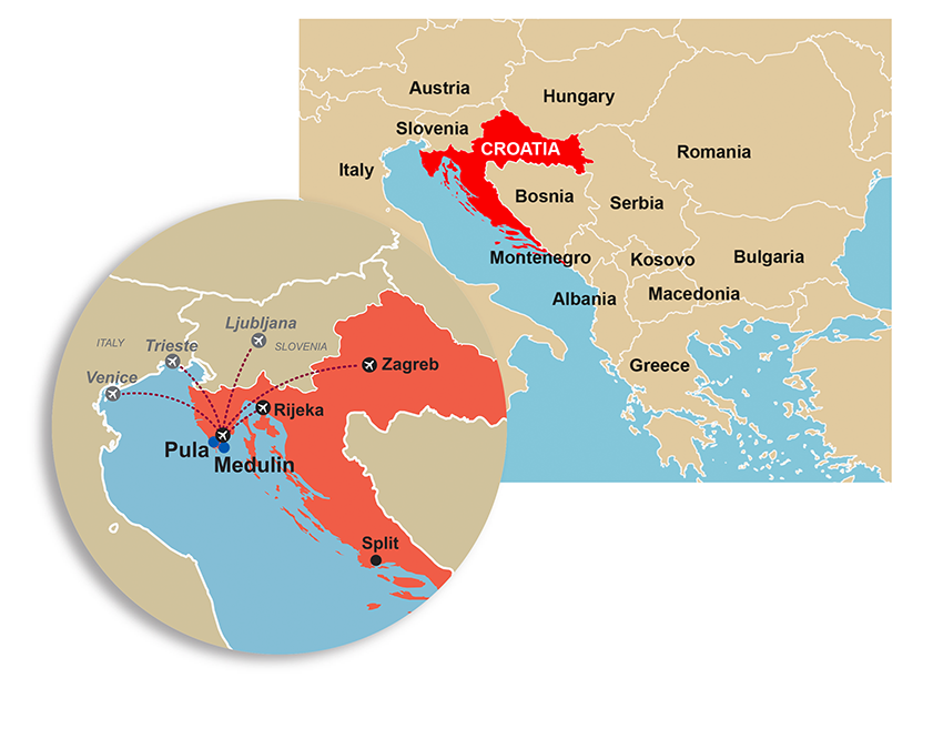 Situées au cœur de l'Istrie, dans le nord-ouest de la Croatie, Pula et Medulin séduisent